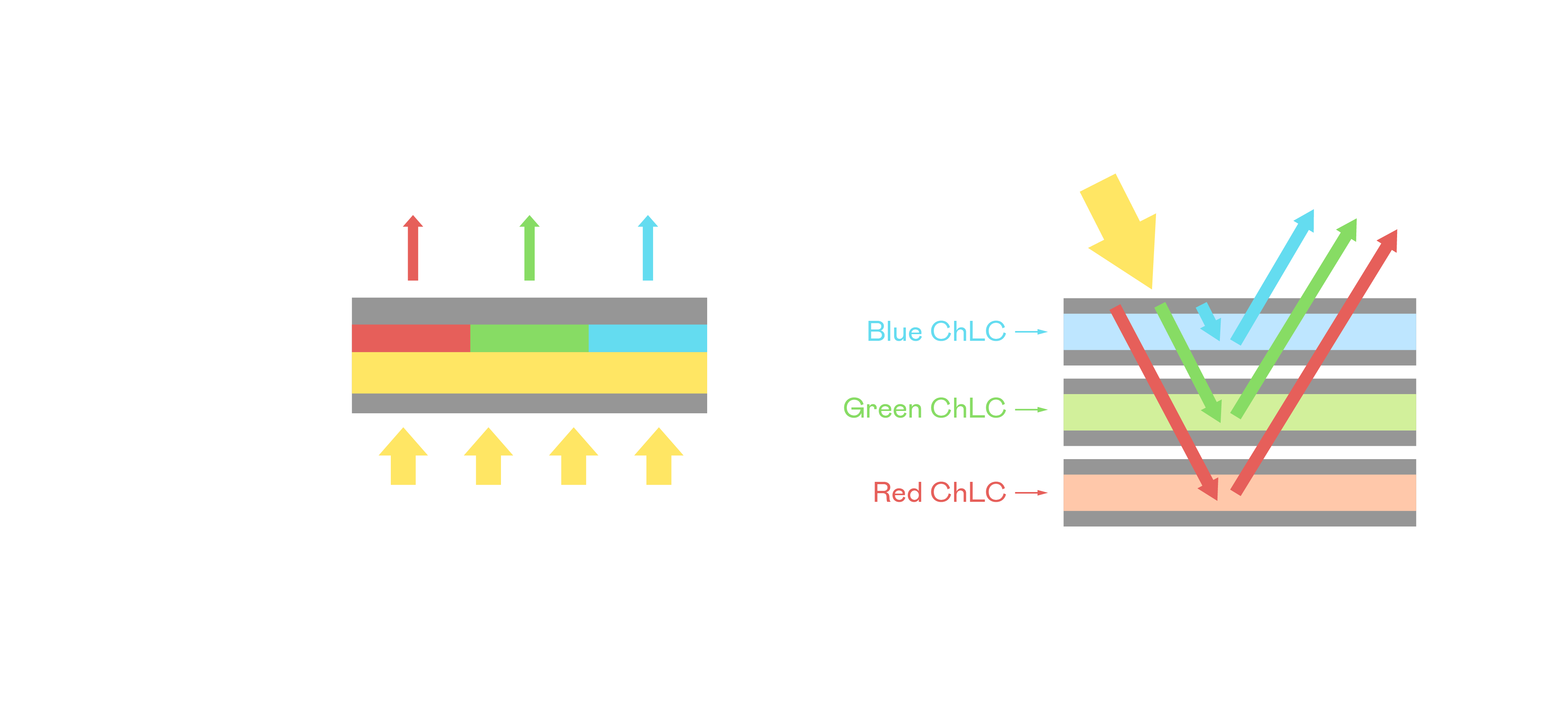 太阳集团城娱8722胆固醇液晶显示器是由红、绿、蓝三层胆固醇液晶面板堆叠而成,并采用无彩色滤光片设计,减少环境光在反射过程中的损耗。